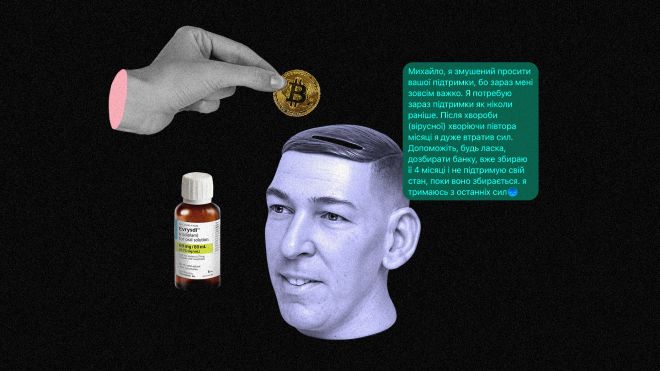На момент публікації я знайшла 10 таких людей, зараз — уже 14. Вони давали йому гроші, бо він щомісяця «помирав».