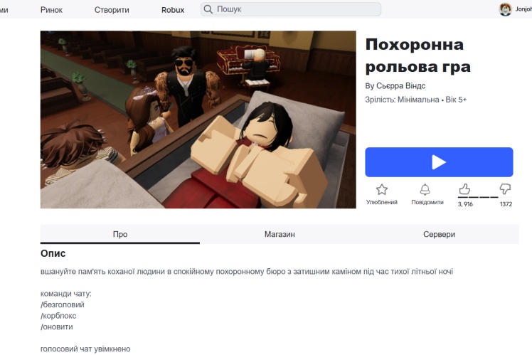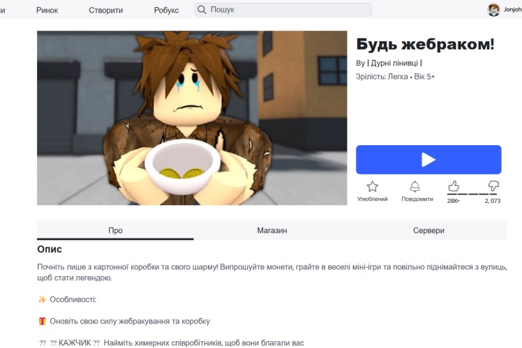 Roblox працює на всіх пристроях, вона безкоштовна, але має всередині власну валюту — Robux. За неї можна купувати одяг для свого персонажа або інші послуги в грі. Творці контенту можуть отримувати Robux (віртуальну валюту) від гравців і конвертувати її в реальні гроші. Також там є чати, голосові розмови та ігрові «спільноти».