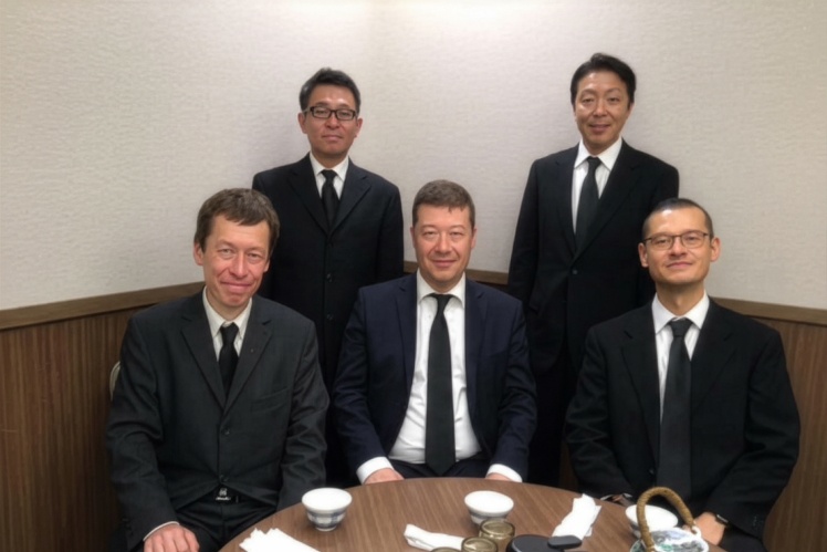 Колишній посол України в Чехії Євген Перебийніс (ліворуч) і старший брат Томіо — Хаято Окамура (праворуч), 13 лютого 2022 року.