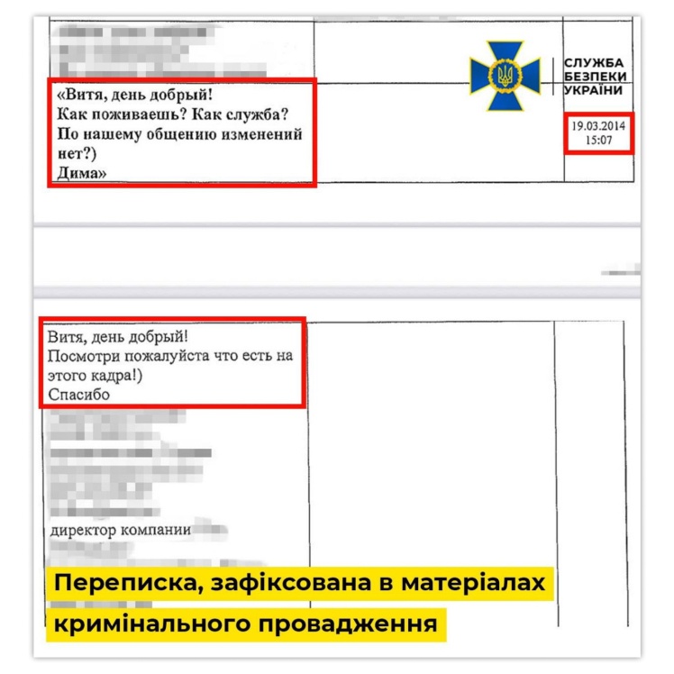 Скриншоти листування, оприлюднені СБУ. Ліва колонка — повідомлення Іванцова. Права — від Гусарова.