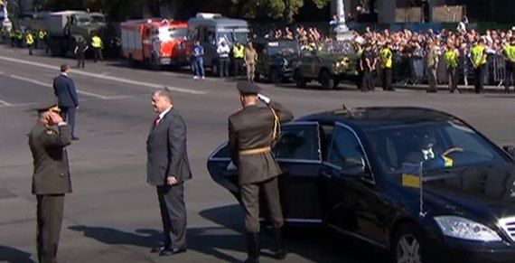 Люди продовжують приходити: струмок тече з Прорізної, з боку Інститутської, зі сторони Майдану. Стати так, щоб бодай щось побачити, неможливо. Чоловік саджає доньку на шию: «Дивись, зараз звідти поїдуть танки». Замість танків зʼявляється чорна автівка, з неї виходить президент Петро Порошенко.