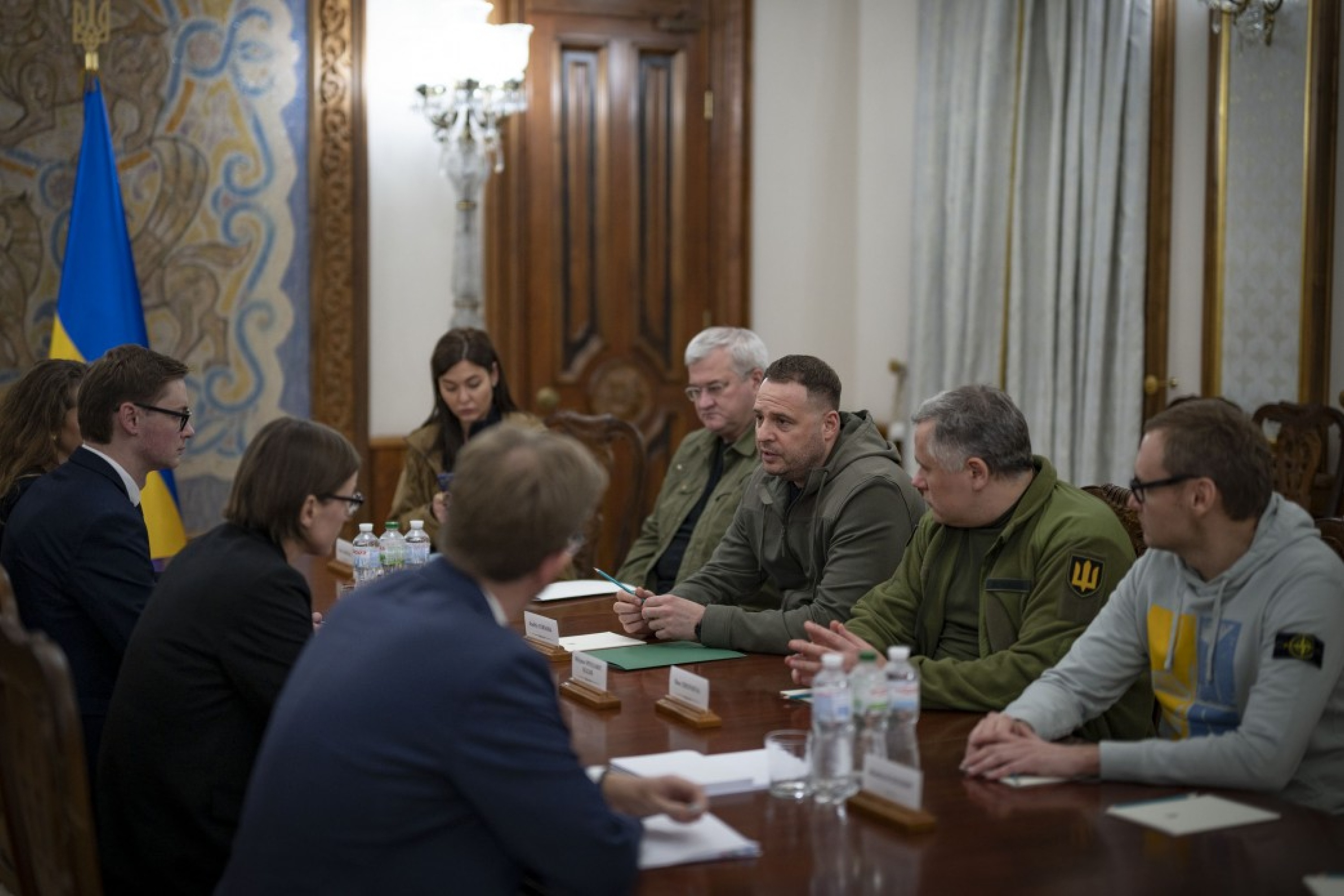 Керівник Офісу президента України Андрій Єрмак провів зустріч із делегацією Міжнародного комітету Червоного Хреста на чолі з президентом МКЧХ Мір’яною Сполярич-Еґґер, 10 грудня 2022 року.