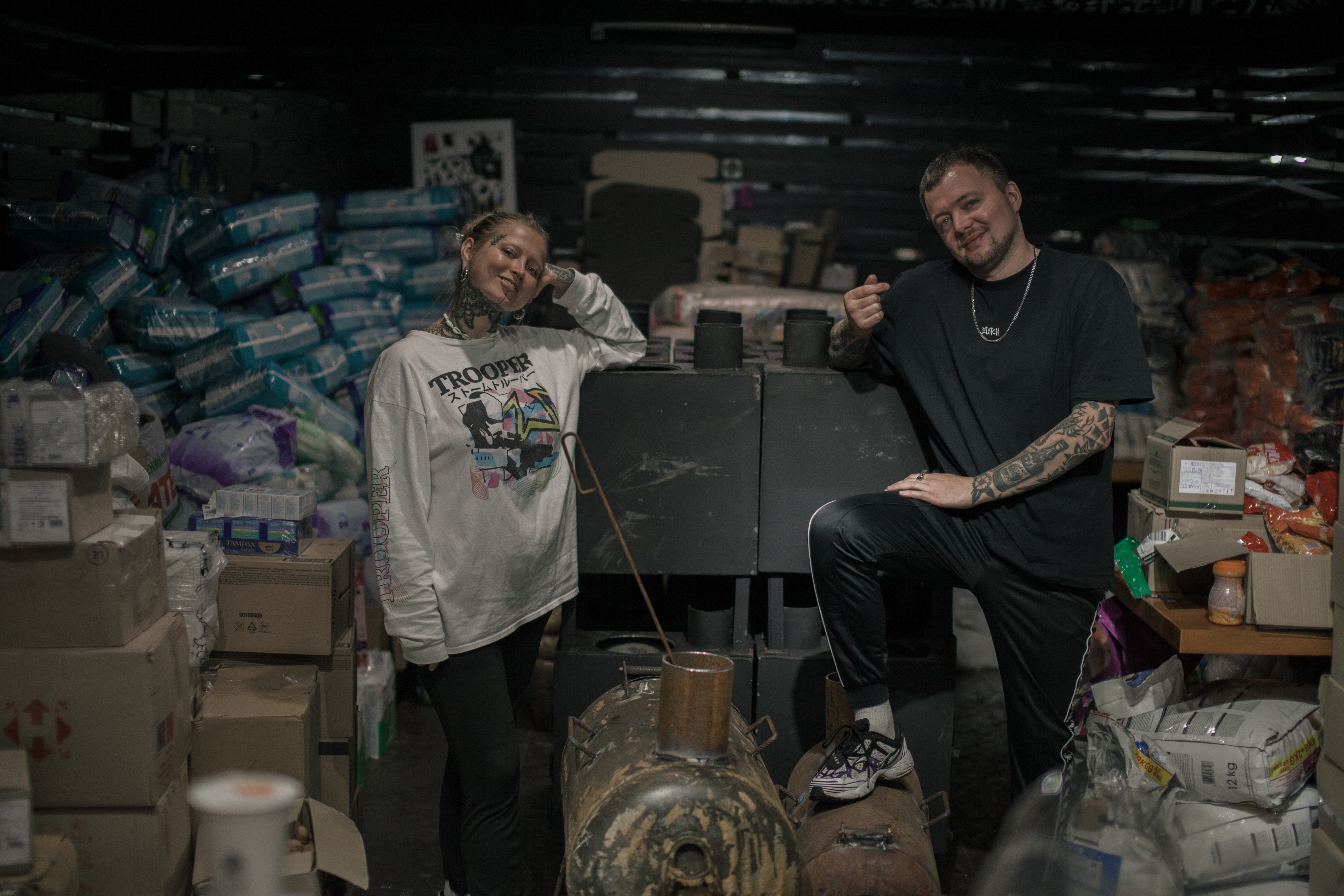 Д.: На складі вдвох, але в нас ще є водії. Зараз усі хочуть допомагати. Я зробила ГО, у ній ми із Сергієм, водій Саша та Діма із Ксюшею. Вони теж водії, але по місту катають, допомагають старим людям, яких кинули родичи.